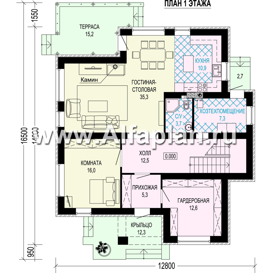 • обеденная зона, продолженная террасой;