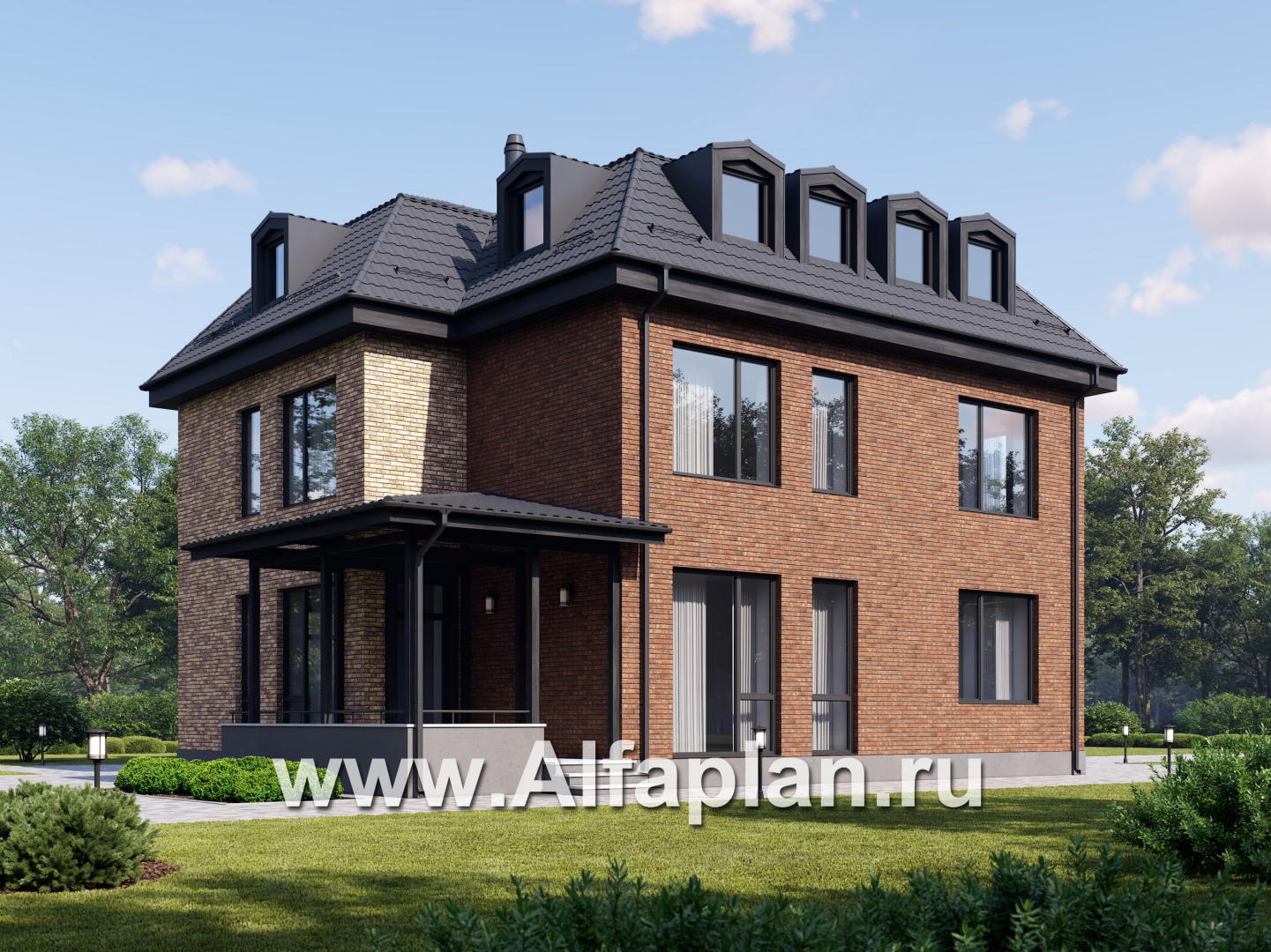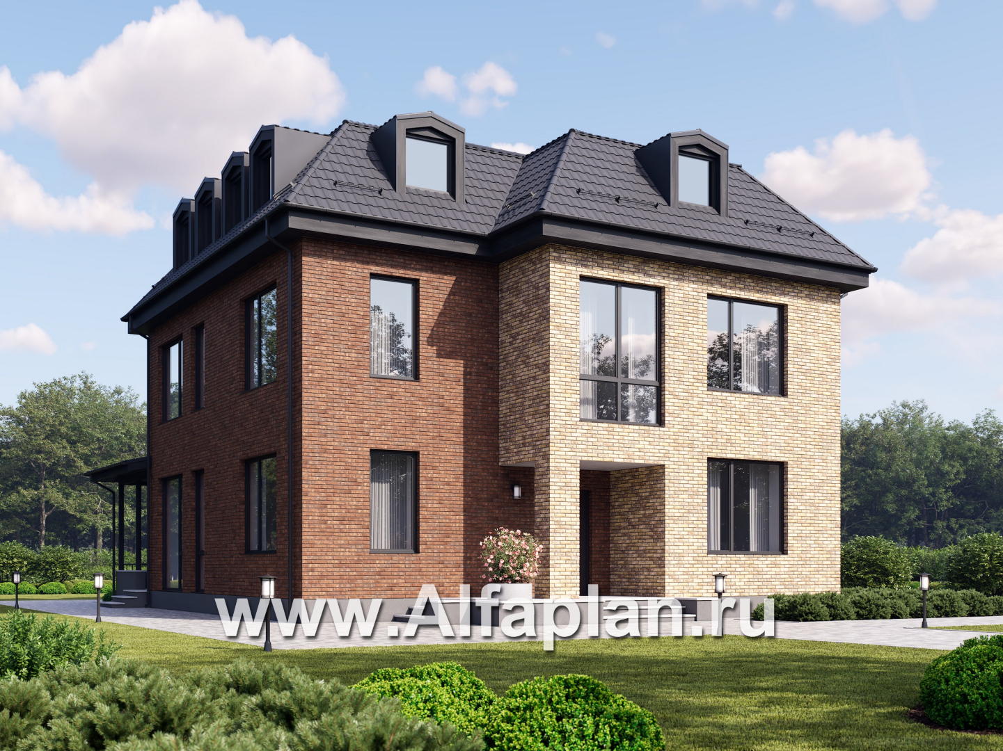 Наружная отделка стен лицевой кирпич, декоративная штукатурка