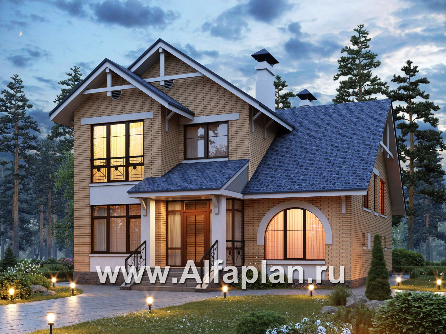 «Дженни Врен» - проект двухэтажного дома из кирпича с фото, планировка с эркером и сауной, в русском стиле - технические характеристики